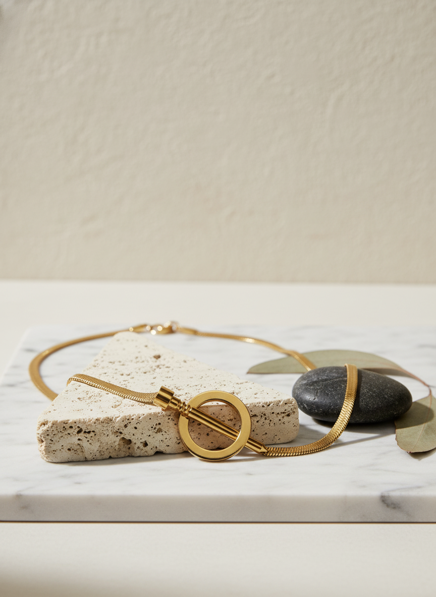 Modern Snake Chain Jewelry | Gold Minimalist Toggle Necklace